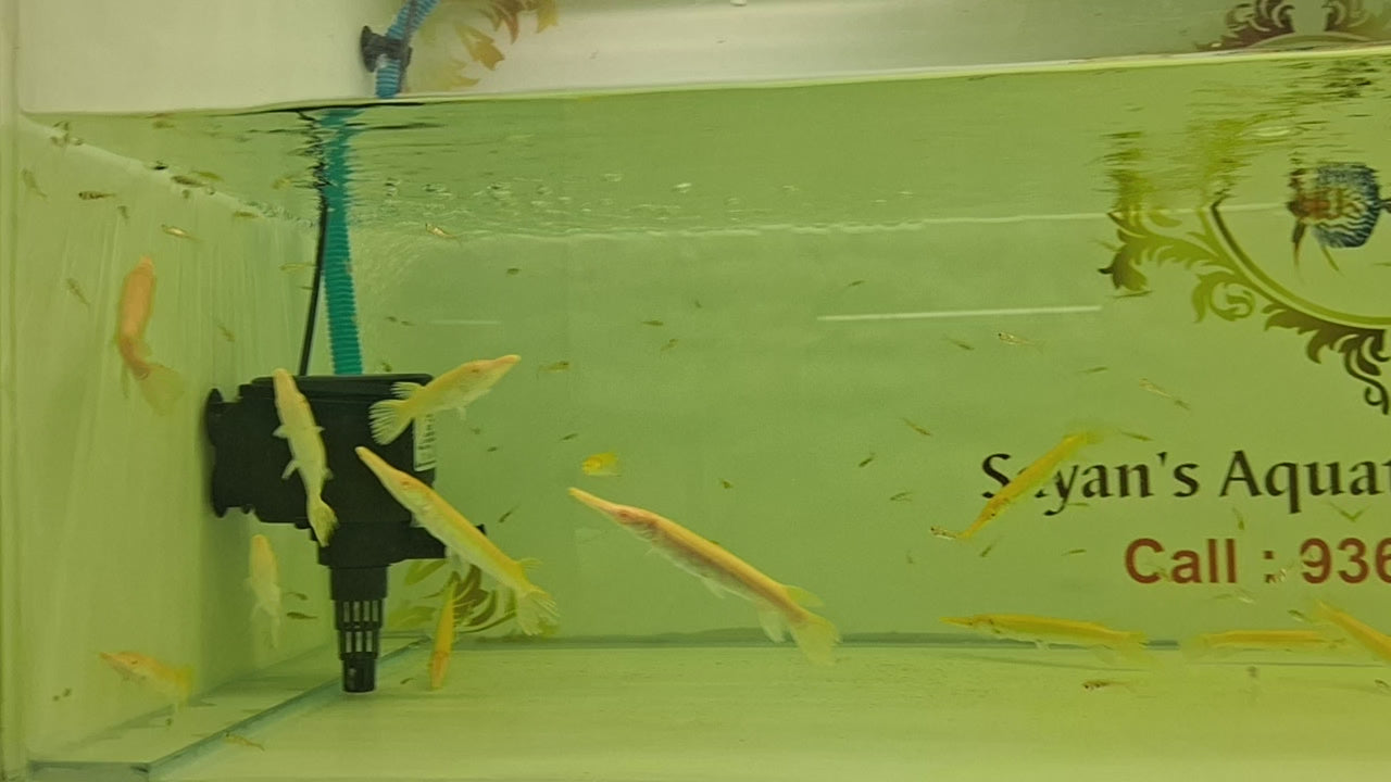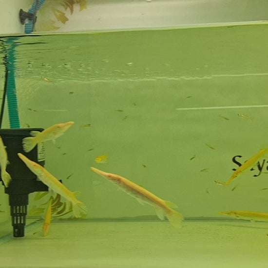 Albino Golden Gars are solitary and territorial, especially when young. They can be housed with other large, non-aggressive fish, but it's best to avoid housing them with smaller fish that could be seen as food. They are known to jump, so a tight-fitting lid is essential.