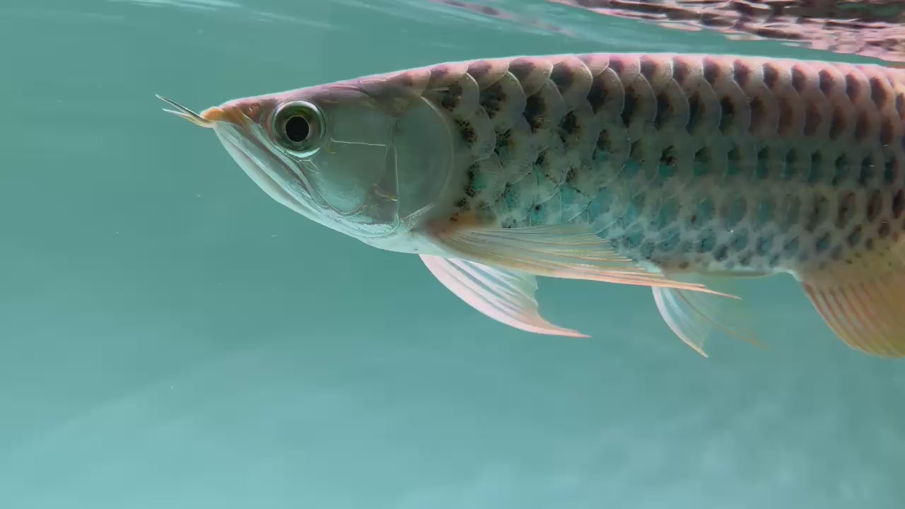 Elongated Body:Like other Arowana species, the Polkadot Crossback has a long, slender body, reminiscent of a mythical dragon, which is why it's sometimes referred to as a "dragon fish".